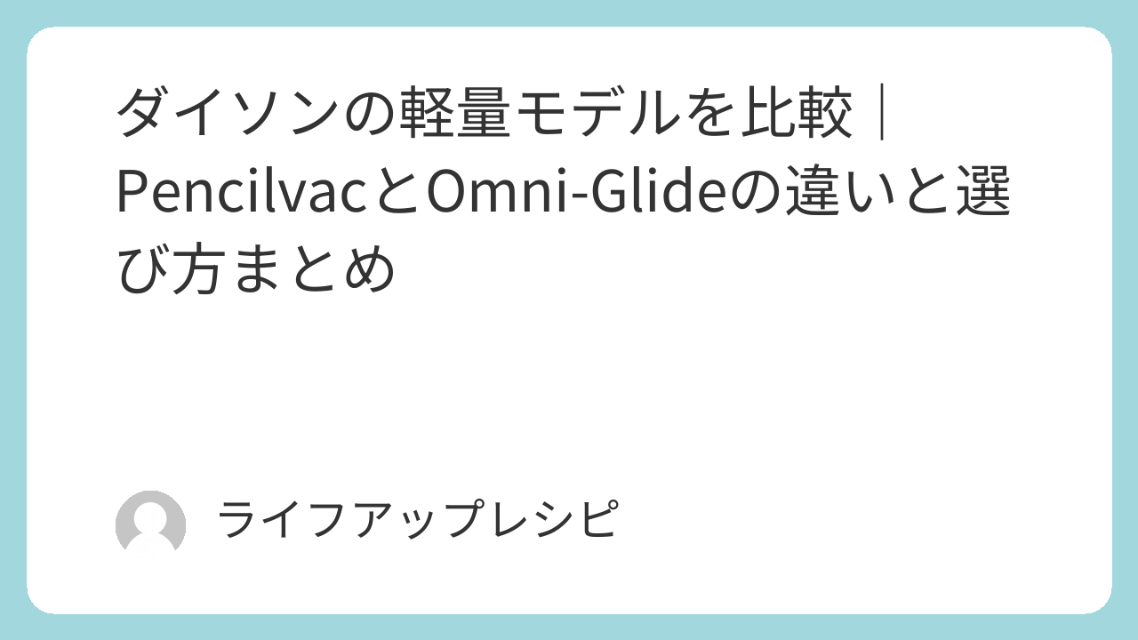この記事では、ダイソンのコードレス掃除機の中でも軽量で取り回しの良さが人気の2モデル「Pencilvac Fluffycones」と「Omni-Glide Complete」を比較しています。
