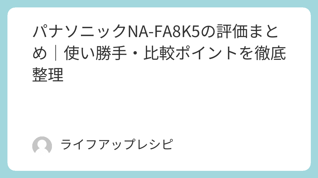 パナソニックNA-FA8K5の評価まとめ|使い勝手・比較ポイントを徹底整理