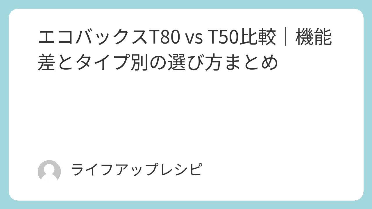 エコバックスT80 vs T50比較|機能差とタイプ別の選び方まとめ