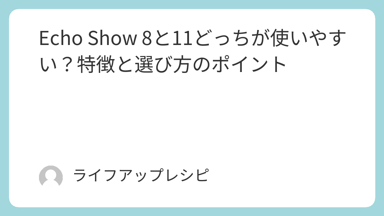 近い距離で操作することが多いならEcho Show 8は扱いやすく、少し離れた場所から画面を見るシーンが多いならEcho Show 11の大きさが活かしやすくなります。