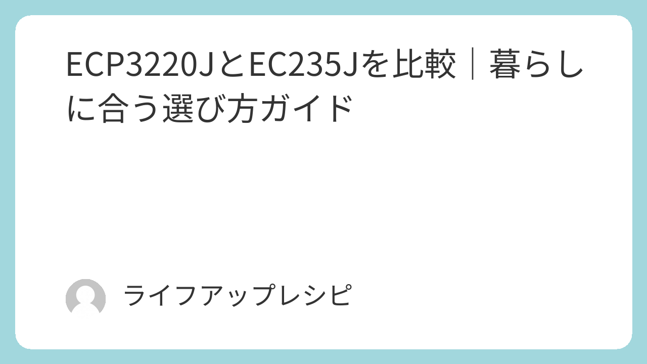ここまで、ECP3220JとEC235Jについて、基本情報から違い、選び方の考え方までを整理してきました。